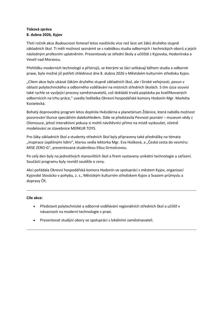 Více než 500 žáků druhého stupně základních škol dorazilo do Kyjova na 3. ročník akce Budoucnost řemesel
